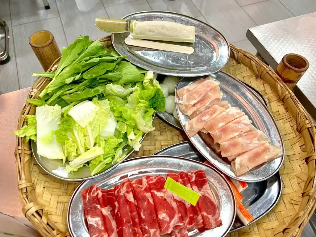 除了招牌的卜卜蜆,餐廳還提供多種新鮮配菜,每樣都分量十足、品質上乘。我們點了嫩滑的雞肉片,肉質細膩不柴;牛肉片切得厚薄適中,涮煮後依然保持柔嫩口感;手工蝦滑彈牙鮮甜,能吃到完整的蝦肉顆粒;時令青菜翠綠新鮮,吸附湯汁後更顯美味。所有食材都處理得相當乾淨,完全吃不到腥味或雜質。特別值得一提的是,配菜的份量給得很大方,2個人分享綽綽有餘。價錢也便宜,值得一試!